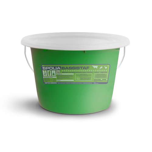 Seau à lécher permettant de diminuer le nombre de parasite interne après une période de pâturage de façon naturelle.